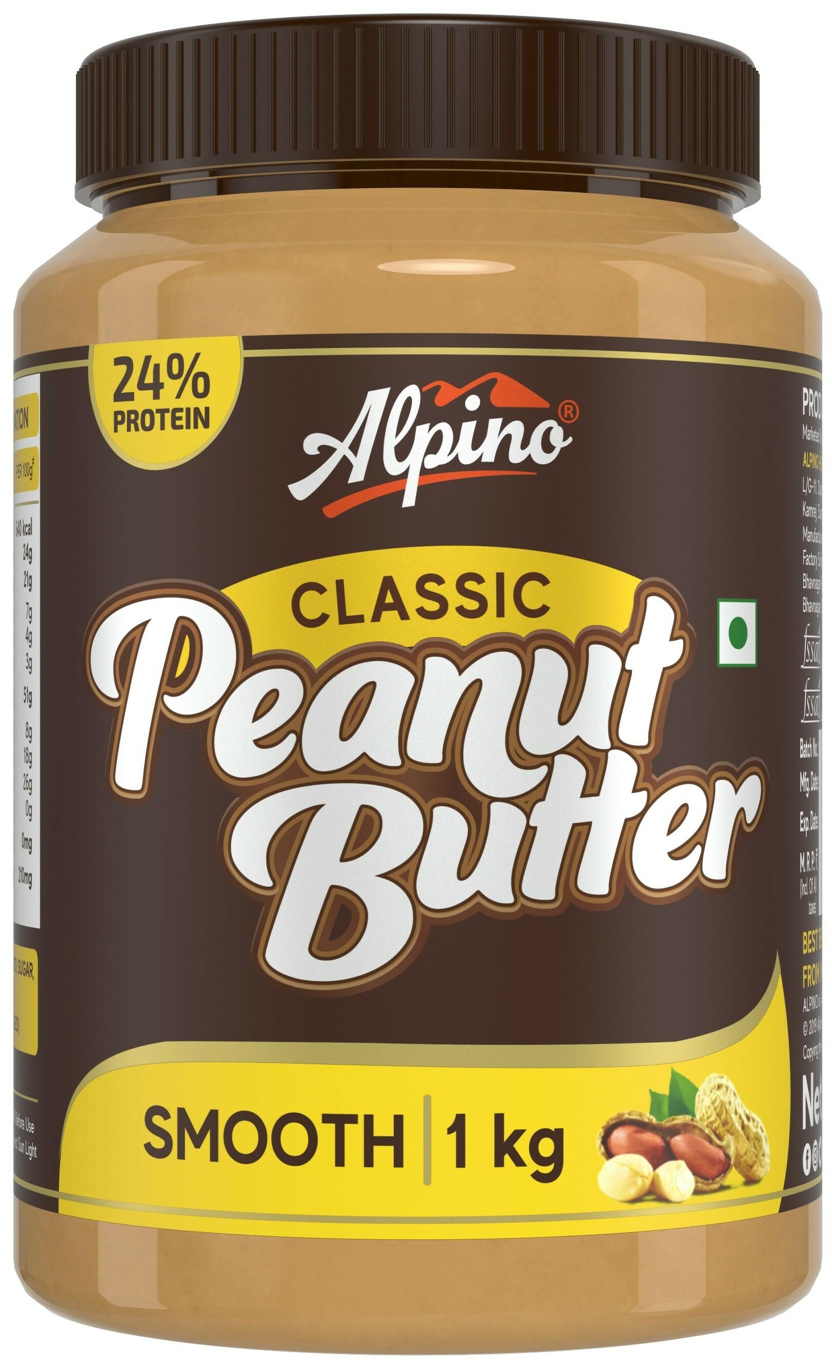 Alpino Classic Peanut Butter Smooth 1 Kg 24 G Protein High Protein Peanut Butter Creamy Gluten Free Vegan Jiomart